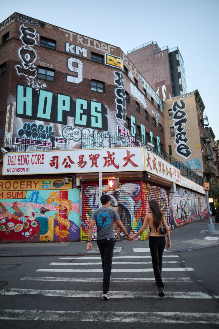 Alexa and Morgan met me in the Lower East Side for their NYC engagement session and took me on a journey through the neighborhoods and spots that have become part of their love story. Every stop held meaning, a piece of the history they’ve built together in the city.